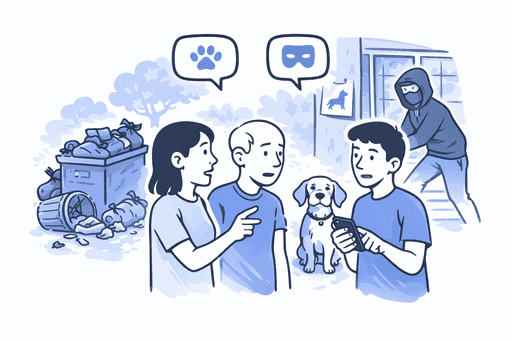 Garbage collection issues, lost pets, criminal activity – discuss what is important.